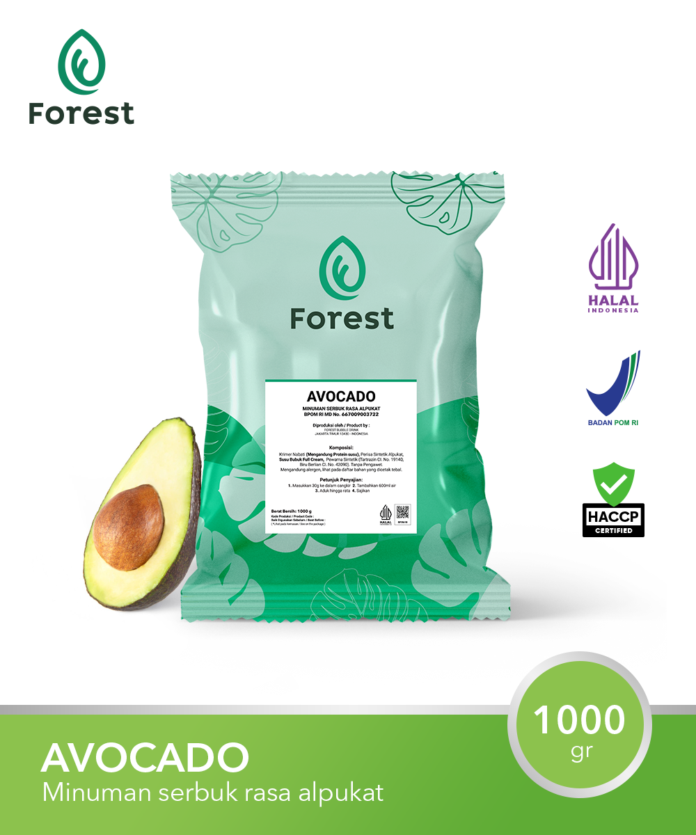 Bubuk minuman FOREST Beverage Solutions ( Bubble Drink ) berkualitas tinggi. Berat bersih 1000 gram. Isi: Non dairy creamer, flavour, dan TANPA GULA. Sehingga dengan jumlah gramasi yang sama, bubuk minuman produk kami menghasilkan minuman yang lebih kaya, lebih bold, lebih creamy, dan pastinya lebih nikmat.